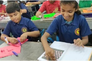 Book Mark Making by Std. 1st and 2nd Standard Students The tiny students of standard 1 and 2 enthusiastically participated in making beautiful bookmarks. Their tiny hands made absolutely beautiful creations. Paper, chart paper, ice cream sticks, colors were used to make the lovely book marksRead More