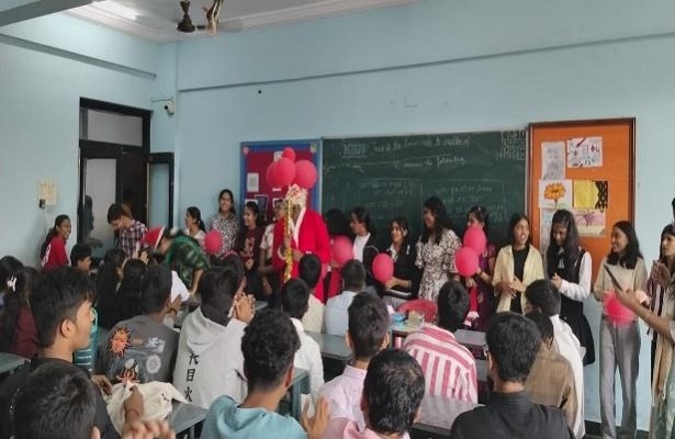 Christmas was celebrated with great enthusiasm at Mahatma International School on 22nd December 2025. The day was filled with festive cheer as students participated in various activities. The celebration began with melodious Christmas carols, creating a joyful atmosphere. Students enjoyed engaging in creative activities like star-making and crafting beautiful greeting cards. Adding to the festive spirit, chocolates were distributed to all the students, bringing smiles to their faces. The event fostered unity and excitement, leaving everyone immersed in the holiday spirit. The celebration was a perfect blend of fun and creativity, making it a memorable day for all.