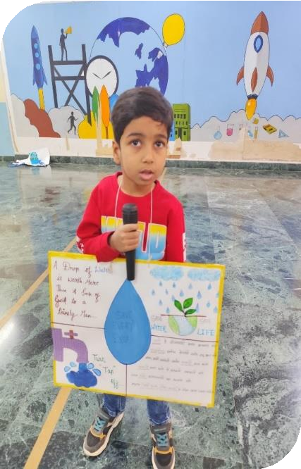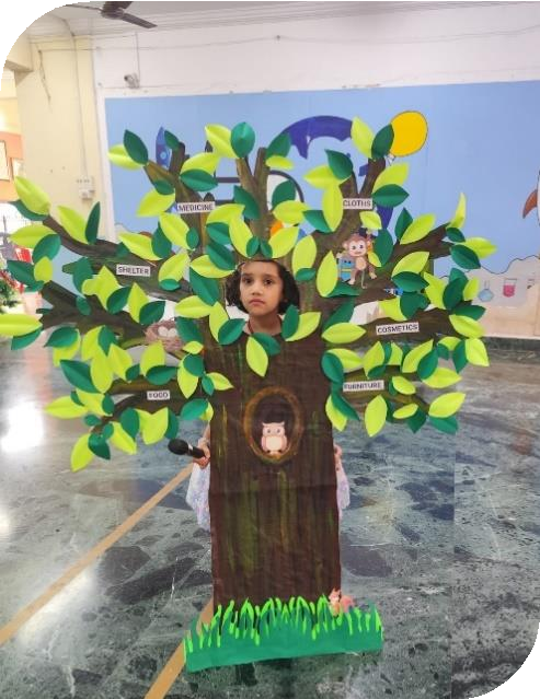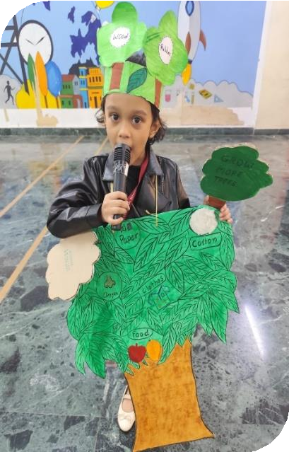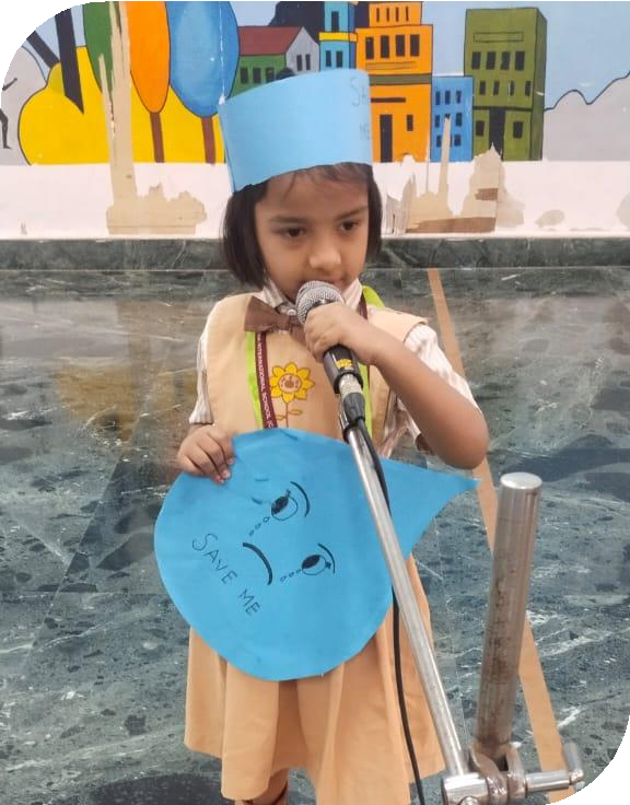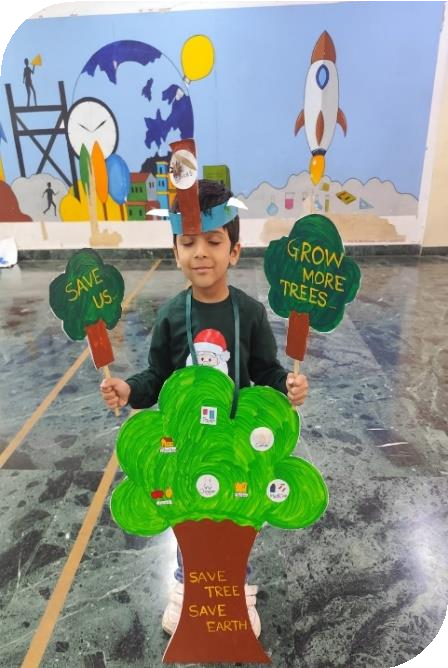 For Senior Kindergarten, the theme was Environmental Awareness, incorporating sub-themes such as “Say No to Plastic,” “Save Water,” “Save Trees,” “Keep the Earth Clean,” and “Recycling.” The children enthusiastically dressed according to their respective themes and confidently articulated their understanding of the chosen topic, demonstrating creativity, awareness, and communication skills.