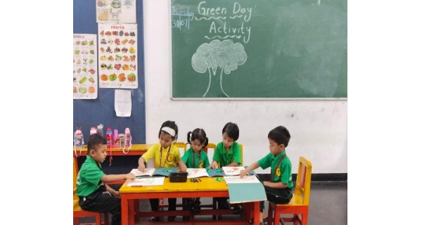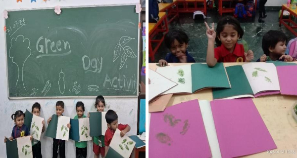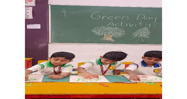 During the celebration, teachers explained the significance of the colour green and introduced it as one of the secondary colours. The enthusiastic children participated by naming various green objects, including bags, bottles, pencils, erasers, plants, caterpillars and other items.