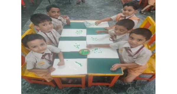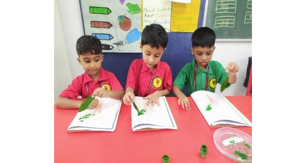 While the Junior KG students participated in collage making to make a tree. Our Nursery students also engaged in the leaf printing activity.