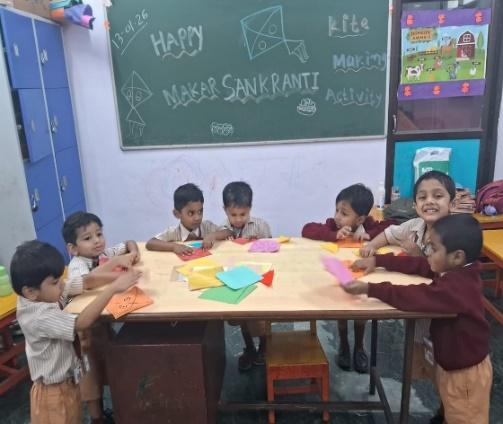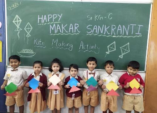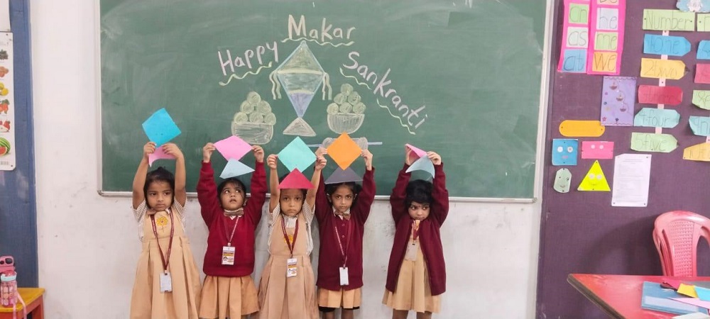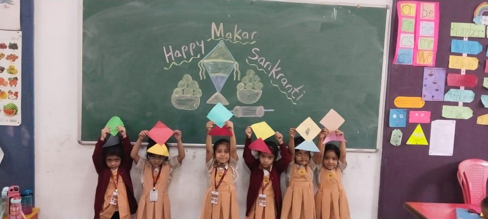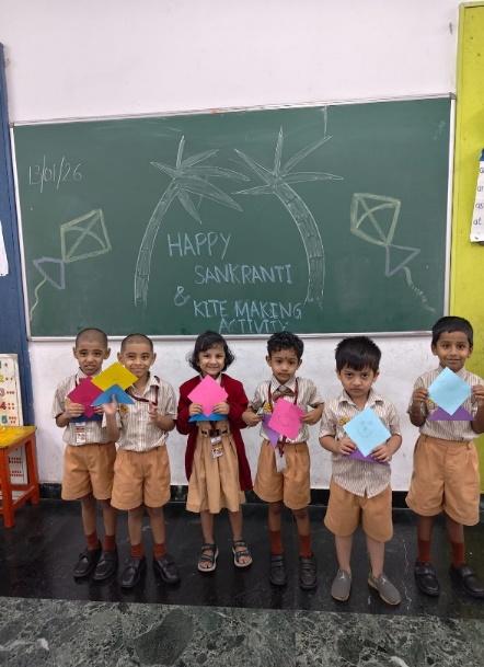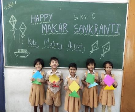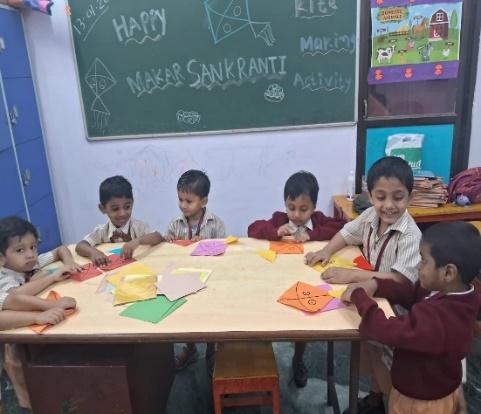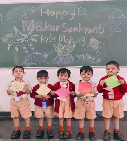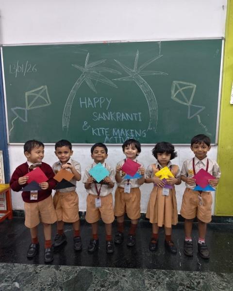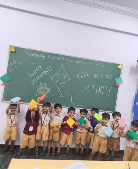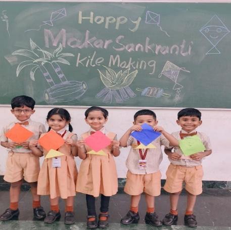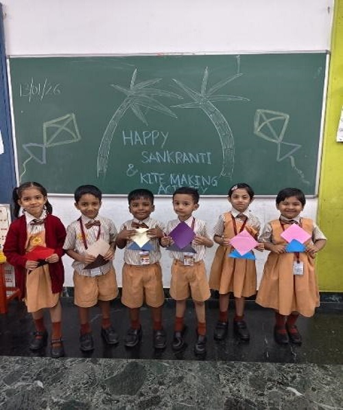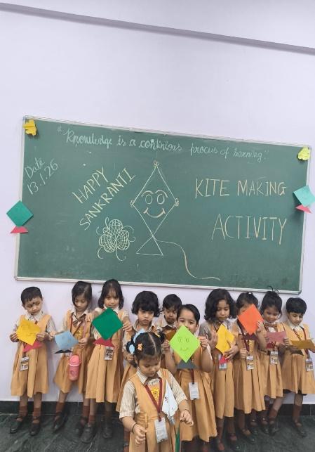 On January 12th, the Pre-Primary section celebrated Makar Sankranti with great enthusiasm. The students actively participated in the festivities. Students also engaged in a creative activity by making colorful kites.