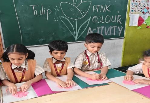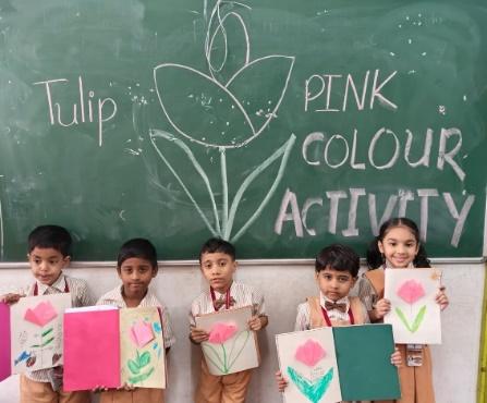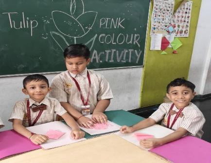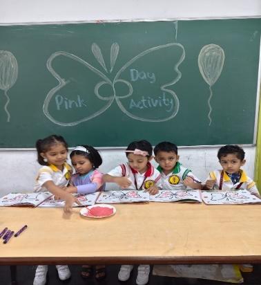 In January 2026, the Pre-Primary wing celebrated Pink Colour Day as part of its experiential learning activities. Nursery students participated in a colouring activity by coloring a lotus image. Junior Kindergarten students created thumb impressions on the image of a butterfly, while Senior Kindergarten students engaged in a tulip paper-folding activity.