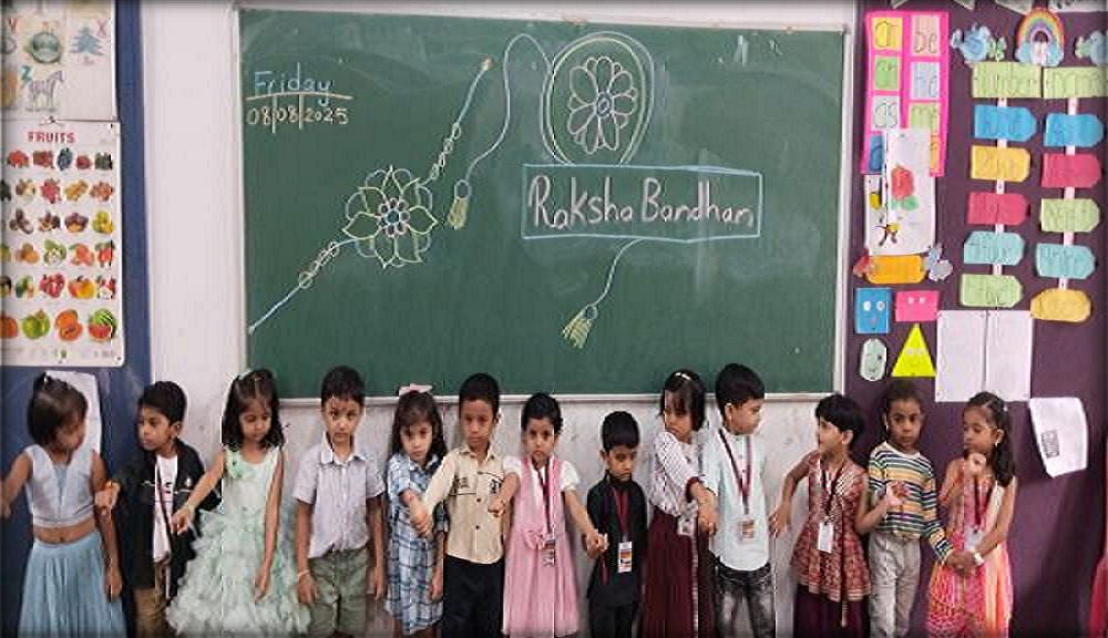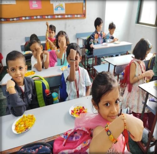 On August 8th, 2025, the Pre-Primary wing of Mahatma International School celebrated Raksha Bandhan. This festival is observed in schools to promote a sense of unity, love, and cultural appreciation among students.