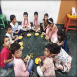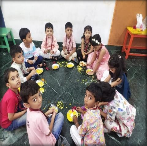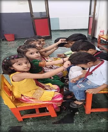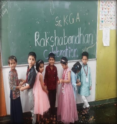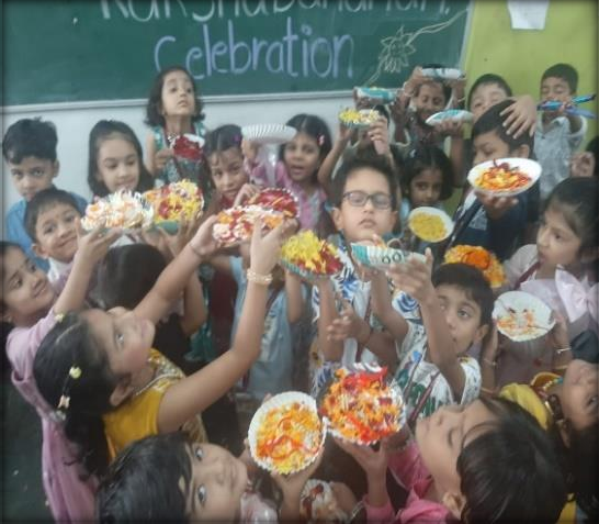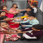 During the celebration, students engaged in decorating paper plates with flower petals. They were also given paper images of rakhis to colour and bring to school. The students exchanged sweets and tied rakhis on each other’s wrists. Everyone enjoyed the festivities and the various activities.