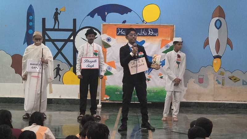 A thought-provoking skit on the meaning of Republic Day conveyed citizens’ duties and responsibilities. This was followed by a graceful classical welcome dance and an energetic stunt dance, symbolizing bravery, discipline, and patriotism.