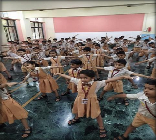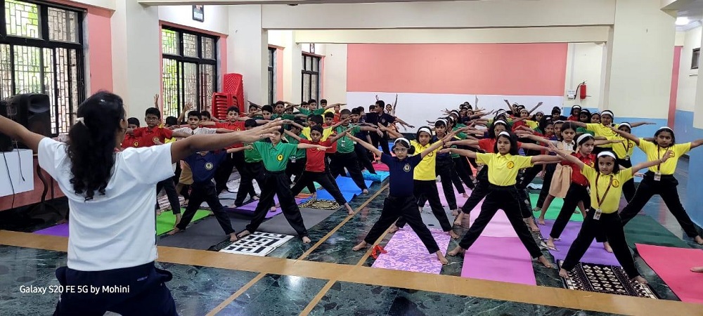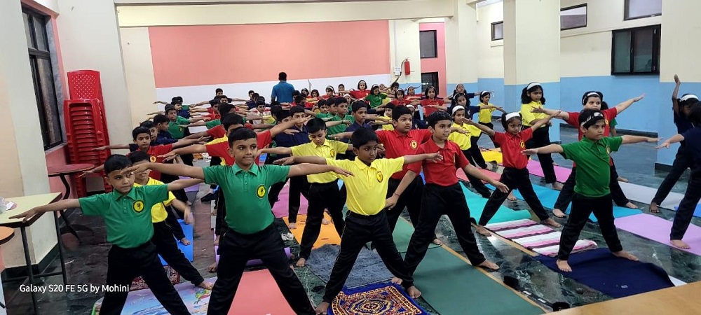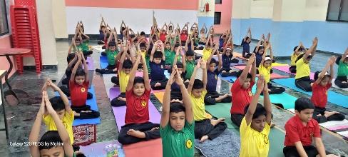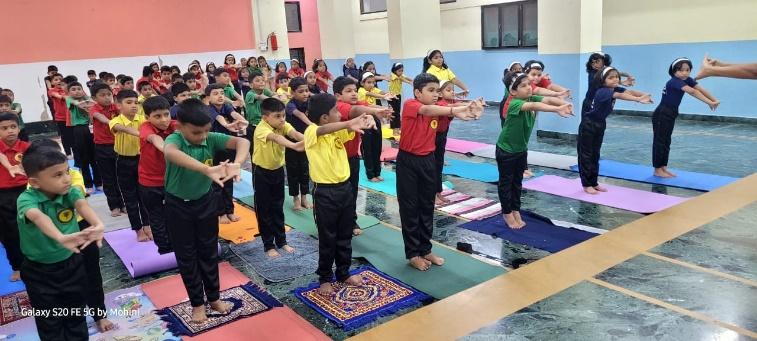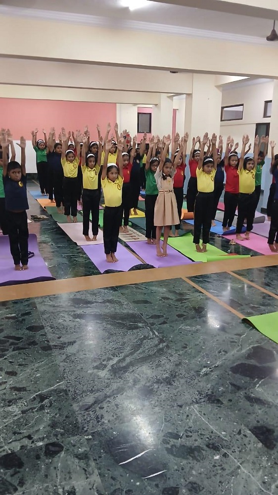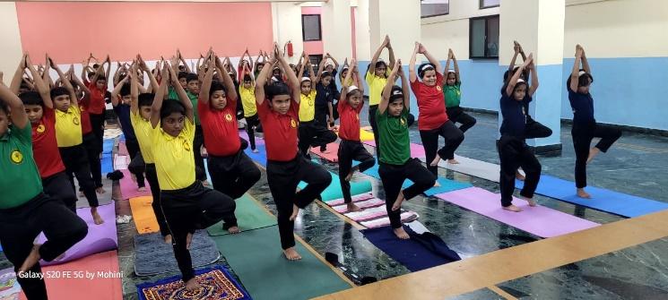 The celebration began with a series of yoga asanas and breathing exercises, led by our trained instructors. Students from various classes participated with great interest and dedication, showcasing their flexibility and focus. The instructor briefed the students about the benefits of yoga asanas and emphasized the importance of incorporating this habit into our daily lives.