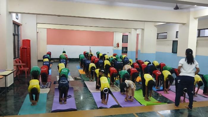Tejas sir and Hemant sir guided the students about how to perform basic asanas and various breathing exercises.