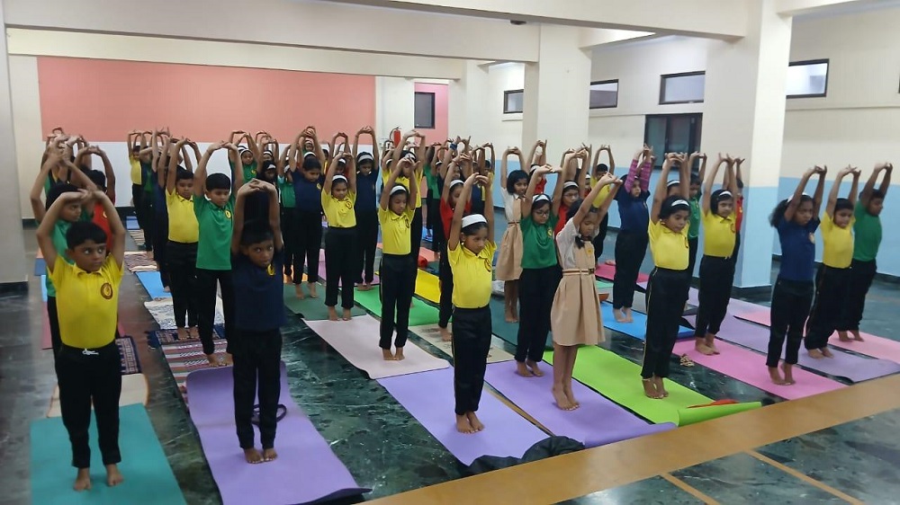 Yoga is a physical mental and spiritual practice which originated in India. The International Yoga Day is celebrated on 21st June in our school. So that the children will understand the importance of yoga in daily life.